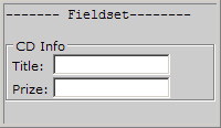 <?xml version="1.0"?> <!DOCTYPE wml PUBLIC "-//WAPFORUM//DTD WML 1.1//EN" "http://www.wapforum.org/DTD/wml_1.1.xml"> <wml> <card title="Fieldset"> <p> <fieldset title="CD Info"> Title: <input name="title" type="text"/><br/> Prize: <input name="prize" type="text"/> </fieldset> </p> </card> </wml>
