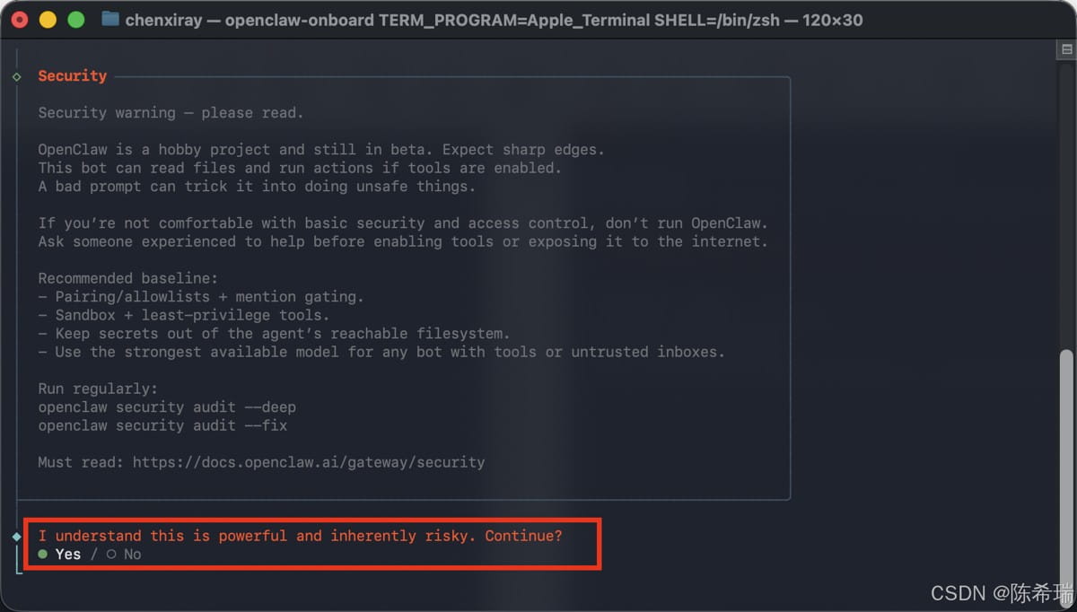 安装好后,将会出现一个问题:是否知晓风险,选择Yes就行。