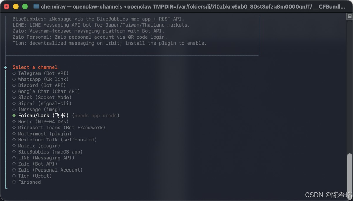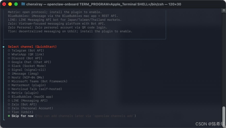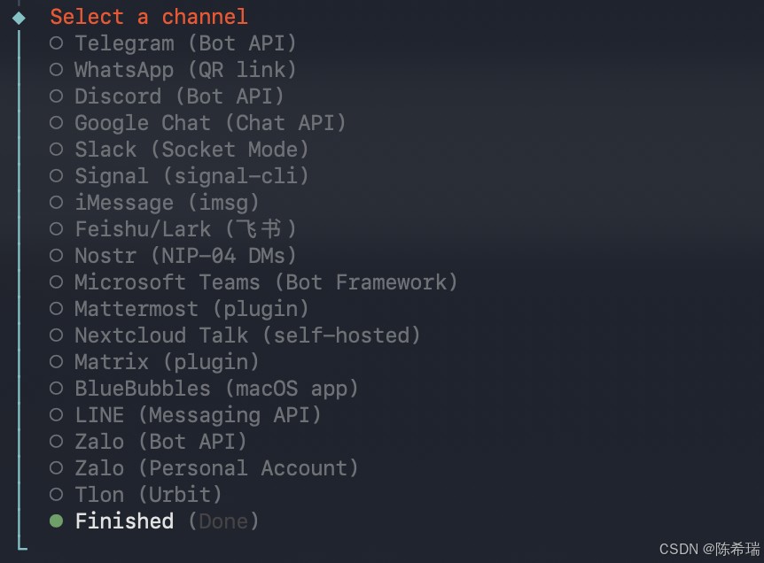 OpenClaw已支持支持很多软件,但是引导流程中显示多为国外应用