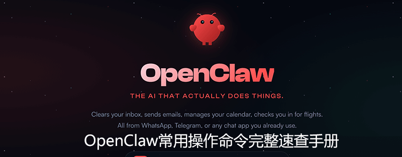 OpenClaw 是一款功能强大的开源 AI 助手框架,支持对接多种大模型和通讯平台,下面就来介绍一下openclaw常用指令,需要的朋友们下面随着小编来一起学习学习吧2026-03-04