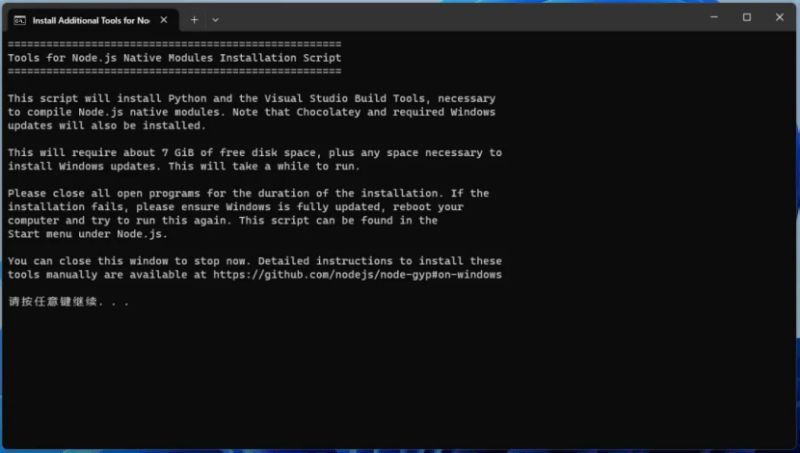 看到下图后,按任意键继续,需要等待一段时间进行自动配置。