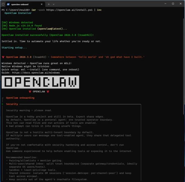 第二步,以管理员身份执行Powershell命令安装OpenClaw