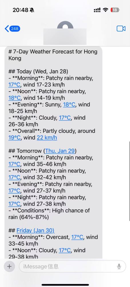 # 安装 imsg(通过指定 tap 源安装) brew install steipete/tap/imsg # 关键自检(验证能否读取 iMessage 聊天列表,核心步骤) imsg chats --limit 3 # 若输出 3 条聊天记录,说明 chat.db(iMessage 数据库)权限正常; # 若提示权限错误,需前往「系统设置-隐私与安全性」授予终端访问「文稿与桌面文件夹」「信息」的权限。