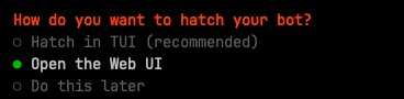 然后他会安装 gateway。等一会儿就行了,然后选择使用命令行对话还是 UI 对话。建议先用 UI 里面很多信息比较清楚。