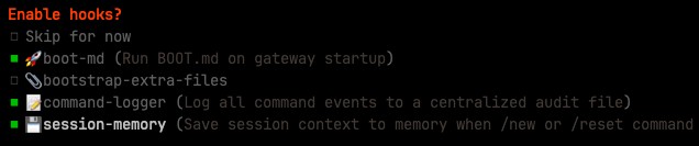 | session-memory | 保存会话记忆 当你执行 /new 命令开始一个新会话时,它会自动将当前会话的上下文保存到你的 Agent 工作区中。 | 可以让OpenClaw拥有跨会话的长期记忆。即使你开启了新对话,它也能回忆起之前聊过的重要信息,让交互更有连续性。 |