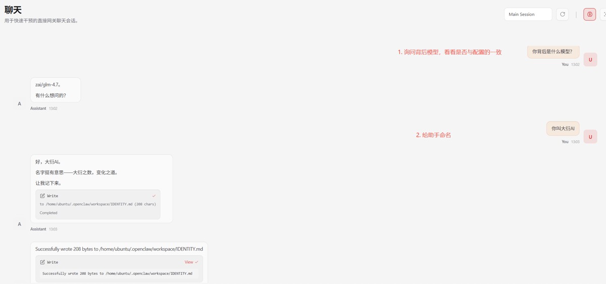 - 询问背后模型,如下图告知是glm4.7,与配置的一致