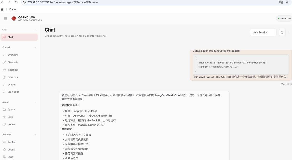 以下配置参考自 LongCat OpenClaw 配置文档,展示了如何完整接入 LongCat 模型: