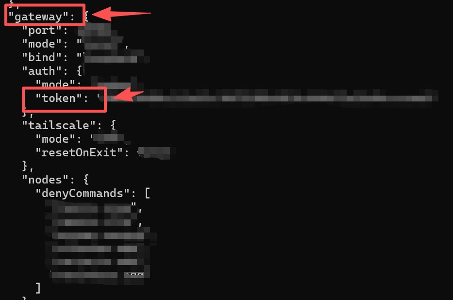 第四步:找到Gateway token(每一个openclaw只有一个这样的token,是一个唯一标识物)