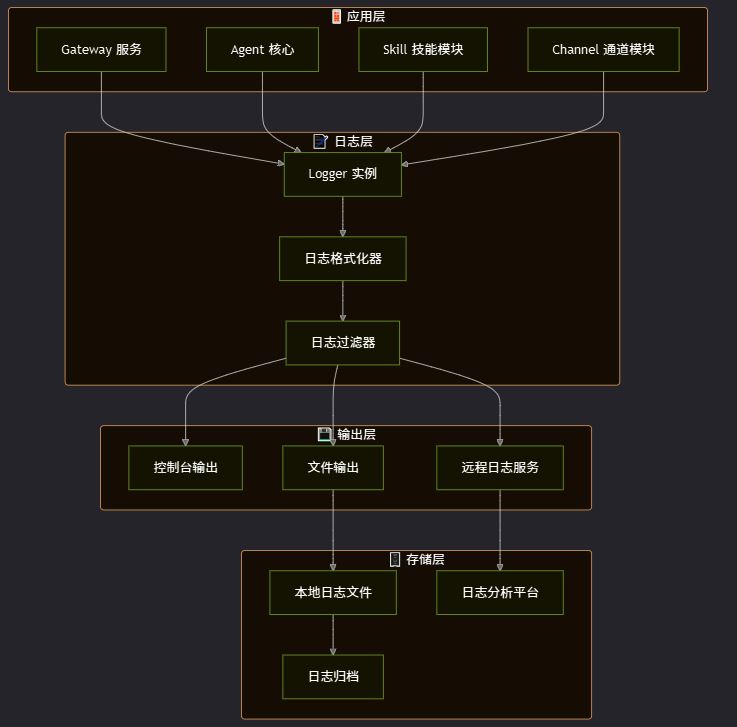 从架构图可以看出,OpenClaw 的日志系统分为四个层次: