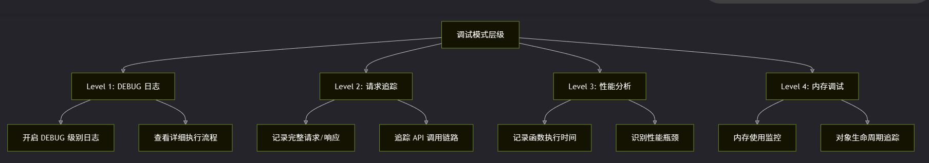 6. 调试模式体系:多层级调试模式从日志级别调整到性能分析,帮助快速定位问题根源。