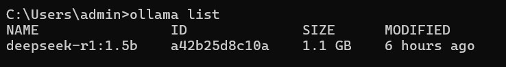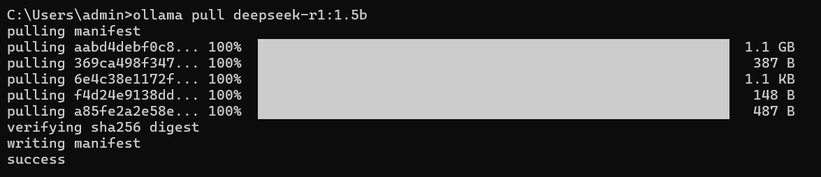 2.下载deepseek模型到本地,可根据自己电脑配置选择下载不同大小的模型,这里以deepseek-r1:1.5b为例