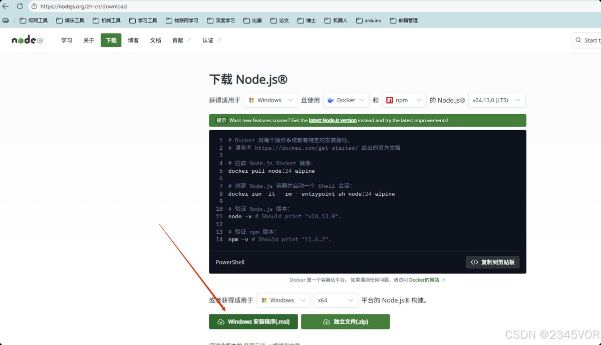 1、Node.js 官方下载地址:https://nodejs.org/zh-cn/download
