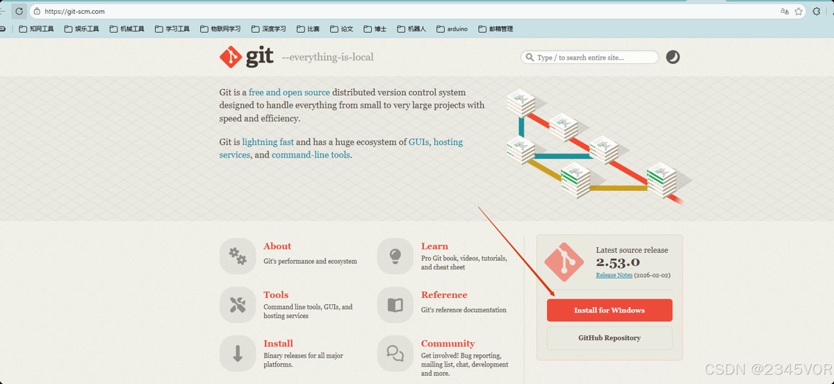 官方地址:https://git-scm.com/✅ 同样会自动识别系统,Windows 点「Download for Windows」,Mac/Linux 对应右侧的下载入口;Windows 建议选 64 位版本,安装时默认选项基本够用,新手不用改。