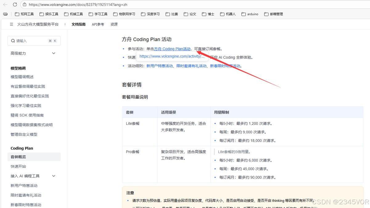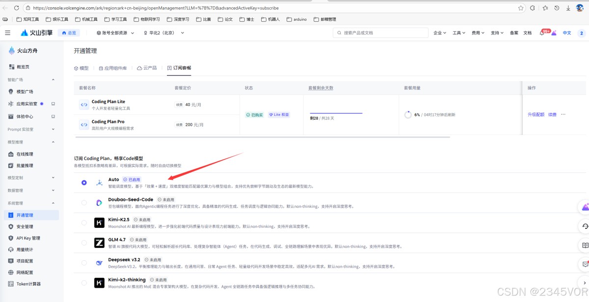 火山引擎订阅: 订阅Coding Plan套餐 配置baseUrl、apiKey和models参数