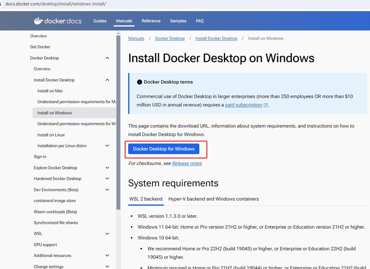 点击下载链接:https://docs.docker.com/desktop/install/windows-install/
