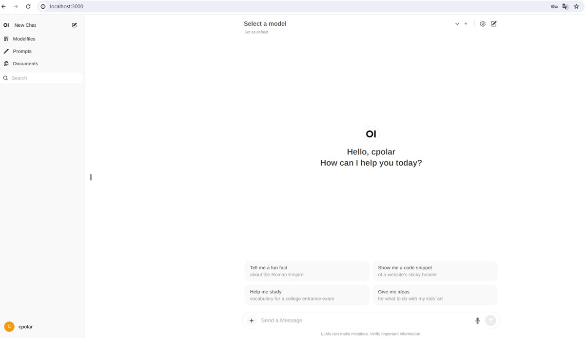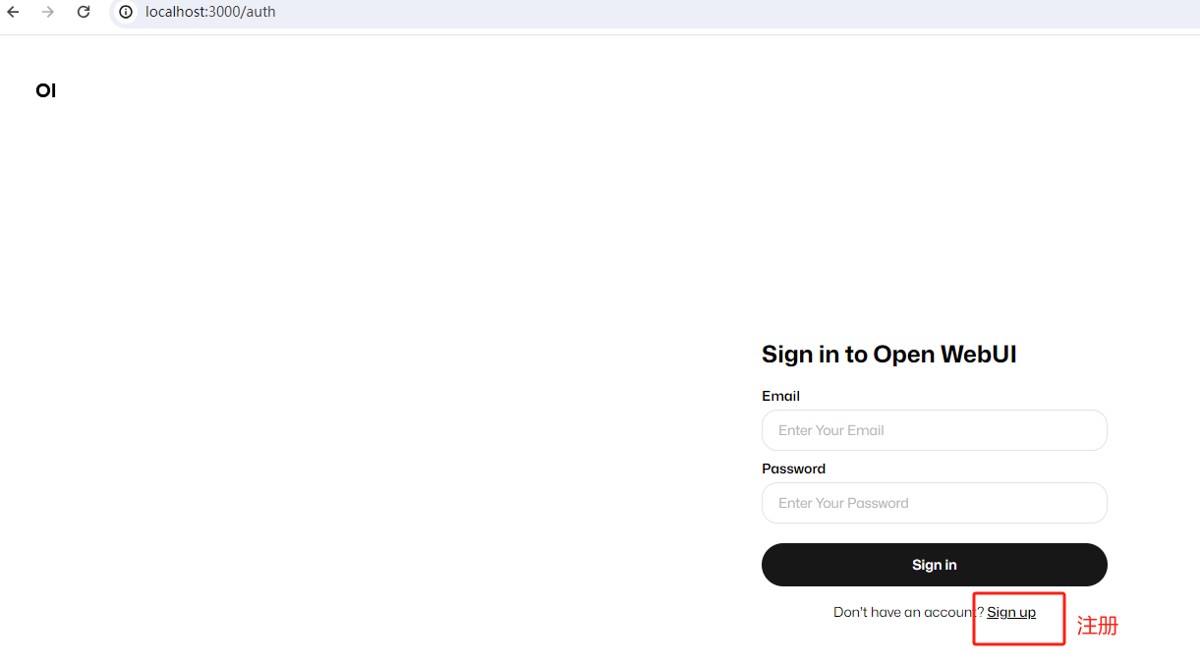 然后点击 create account 创建账号即可:然后就能在浏览器中使用类似 chatgpt 界面的 Open WebUI 了!
