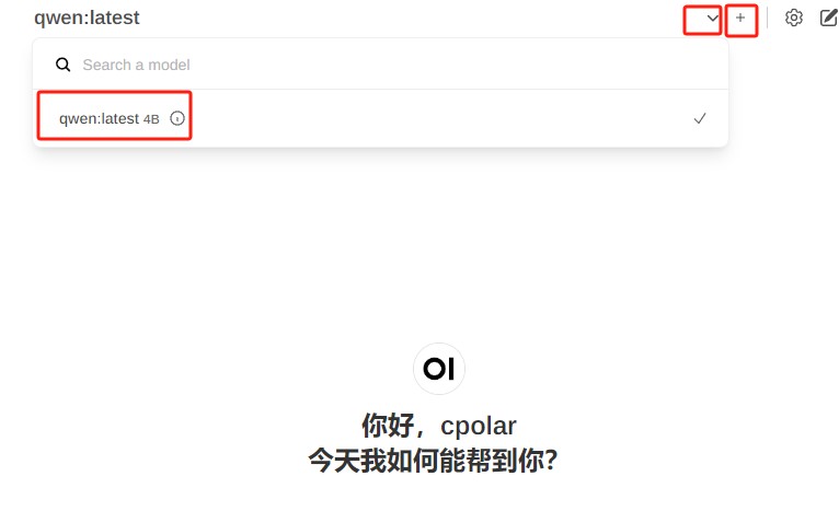 点击上方选择一个模型旁边的加号+可以增加大模型,点击下拉按钮可以选择当前使用哪一个已安装的模型,接下来就可以愉快的跟 ai 聊天了!