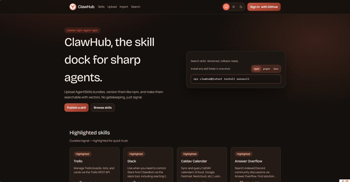 - ClawHub 提供了便捷的技能包管理