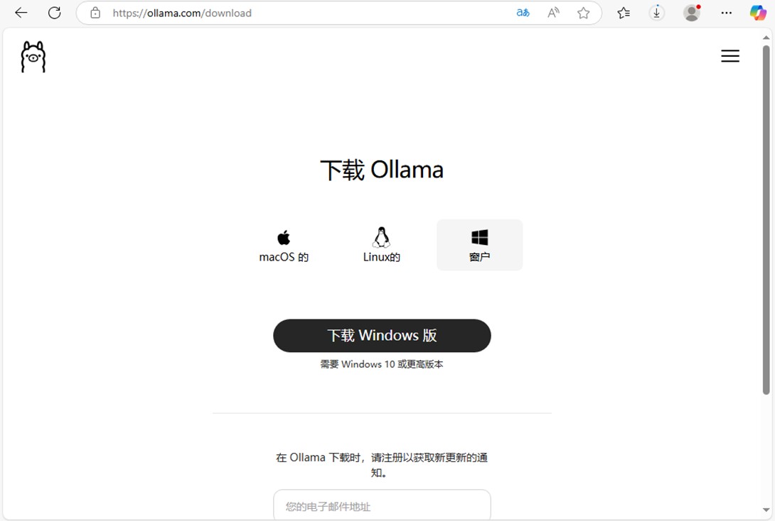 注:ollama是完全开源的,需要 Windows 10 或更高版本