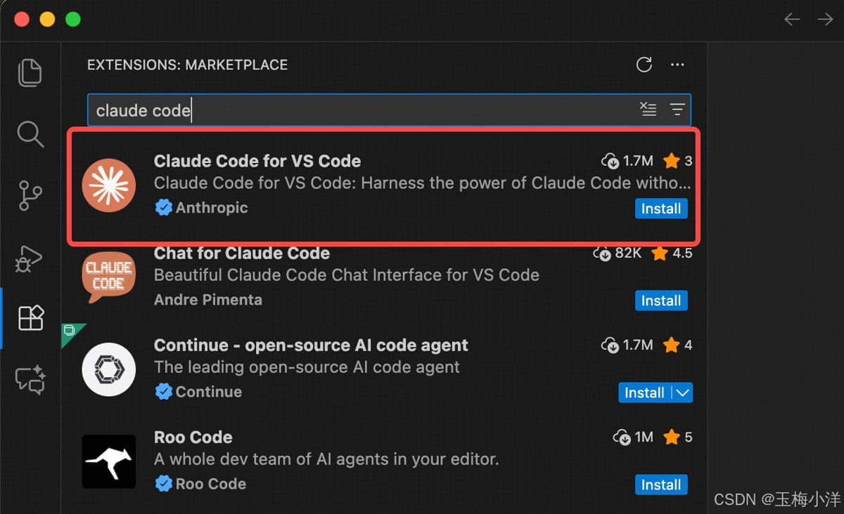 打开 Vscode,进入扩展市场,搜索并安装「Claude Code」插件进行安装。