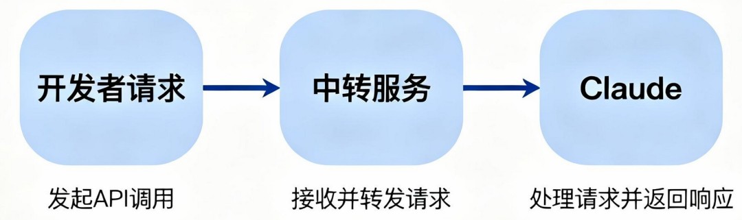 你 → 中转服务器 → Claude 官方 → 把结果传回
