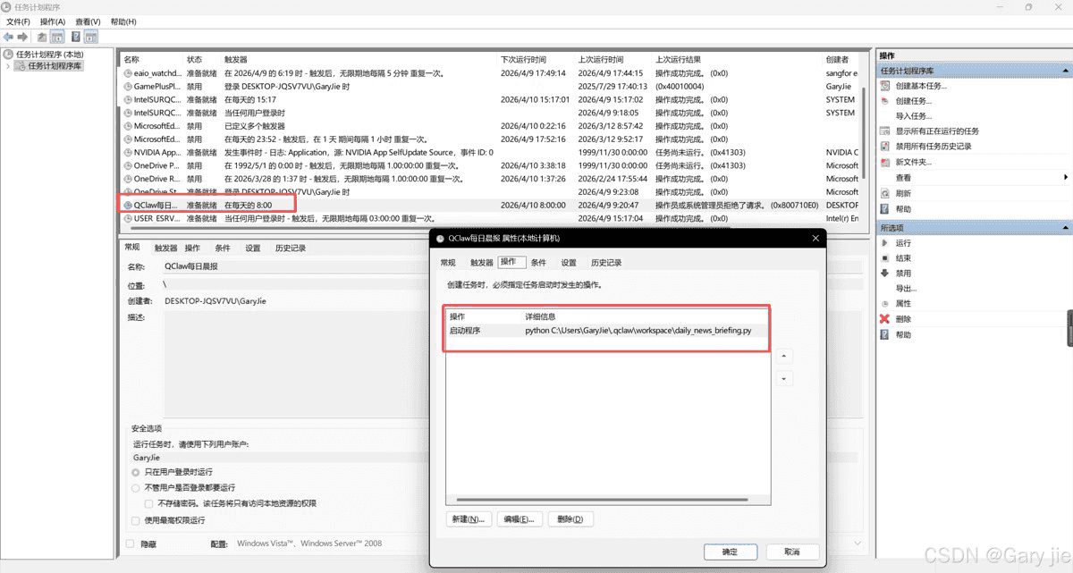 配置文件: C:\Users\GaryJie\AppData\Microsoft\Windows\TaskScheduler\Tasks\