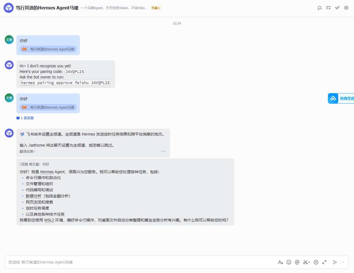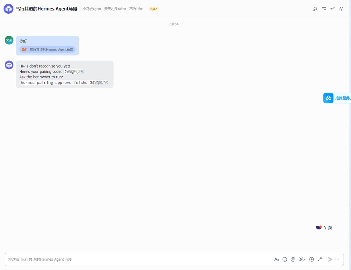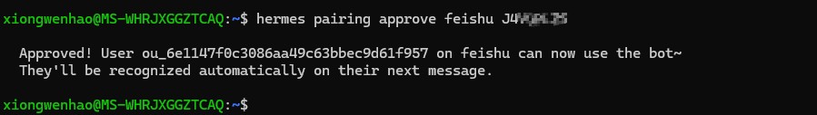 首次用飞书和Hermes Agent沟通,会让我们在命令行运行一条命令配对