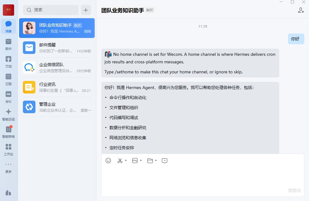 以上就是Hermes Agent接入飞书和企业微信的全流程指南的详细内容,更多关于Hermes Agent接入飞书和企业微信的资料请关注脚本之家其它相关文章!