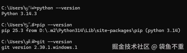 - 安装 Git:访问 Git 官网,下载对应 Windows 版本,默认安装即可(无需修改配置)。