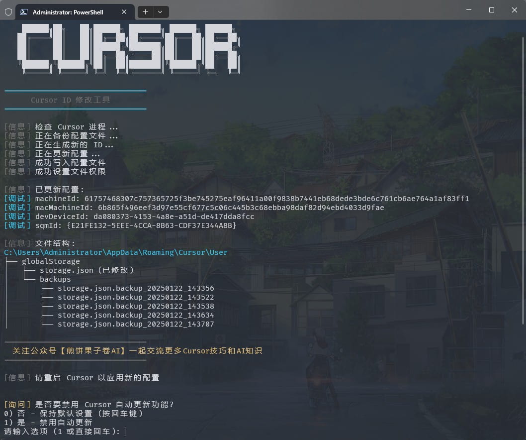 脚本会自动检测并终止所有Cursor相关进程,确保文件修改能够顺利进行。