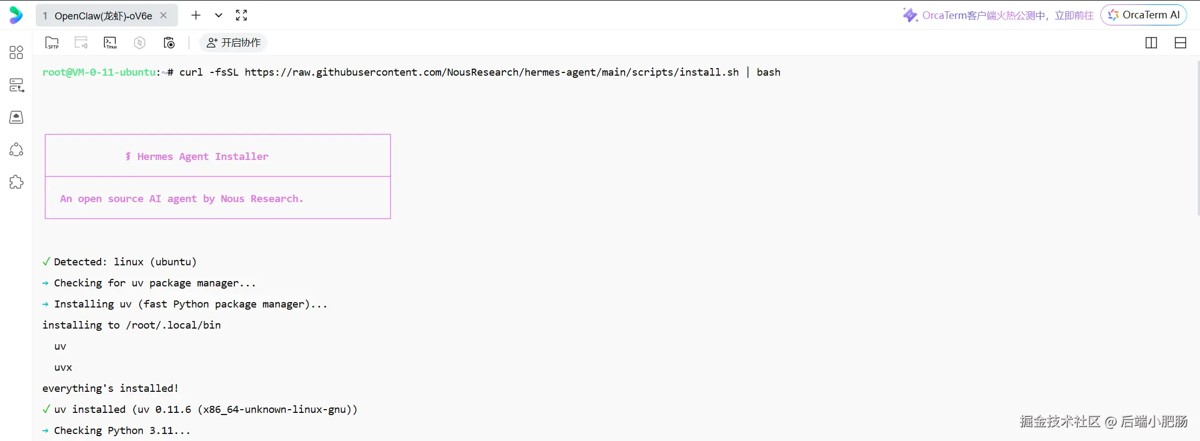 大家好,我是小肥肠。Openclaw 还没完全摸透,hermes-agent 又来了,这几天社群里都在问安装教程,我去看了一下相关资料发现确实值得卷一下。这篇教程就教大家在自己的 云服务器 上从0到1将hermes-agent安装并接入 飞书 ,感兴趣就码住跟练哦~