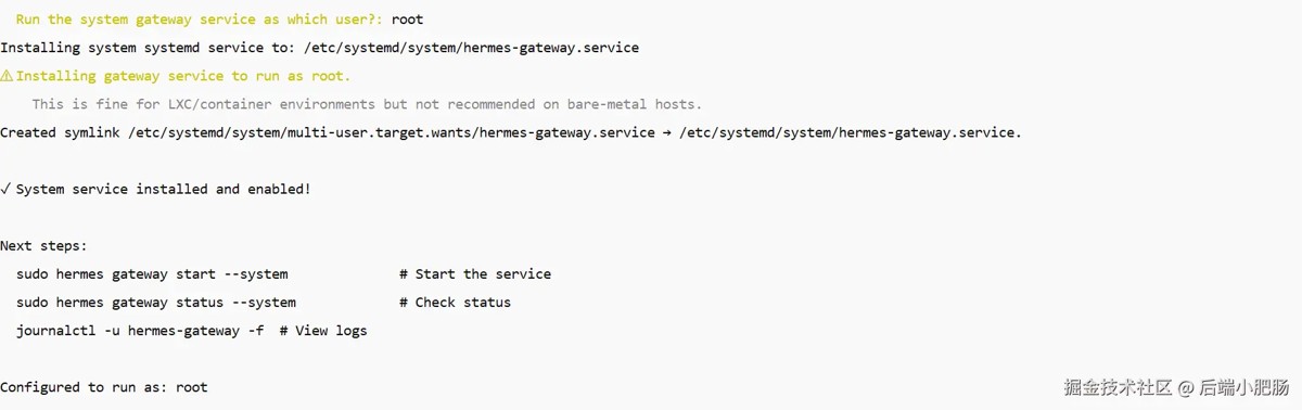 如下图把网关安装成 systemd 系统服务,在键盘上输入y后按下回车键: