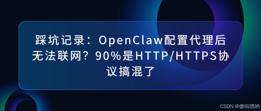 OpenClaw配置代理后无法联网,90%的情况下是HTTP/HTTPS协议混淆导致的。具体表现为: