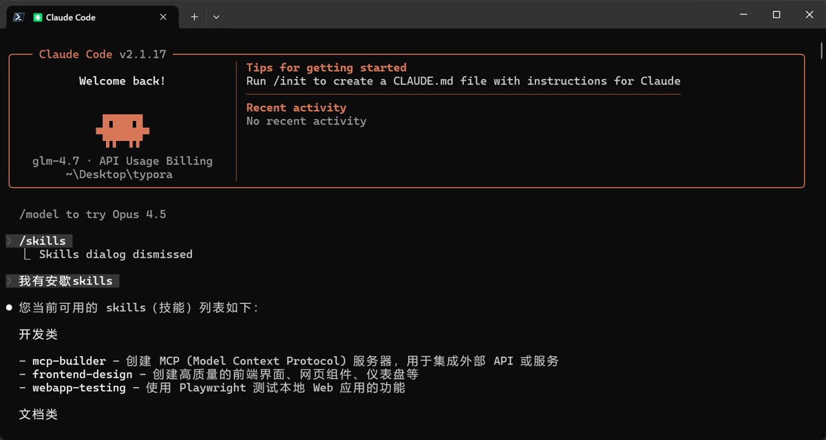 下载完成后,查看 ./skills 目录,出现多个 skills 即代表配置成功。