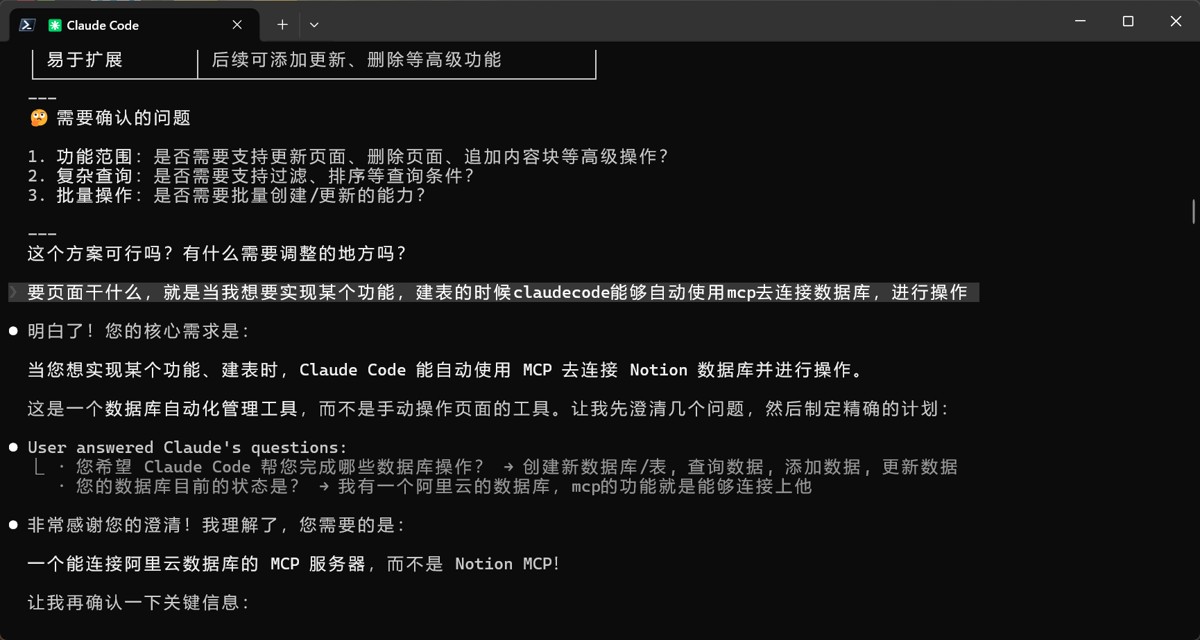 经过两轮纠正后,CC 已经完全理解需求,开始正式设计 MCP。