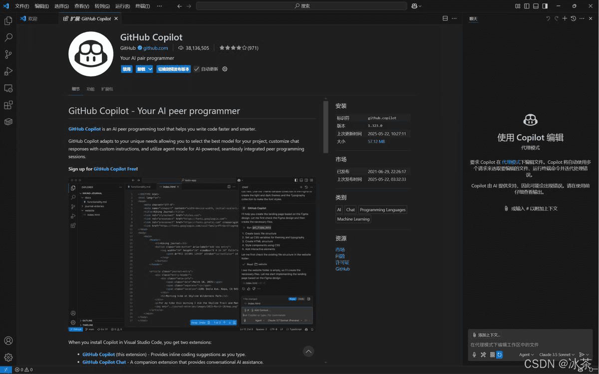 - 找到官方的GitHub Copilot扩展并点击"安装"