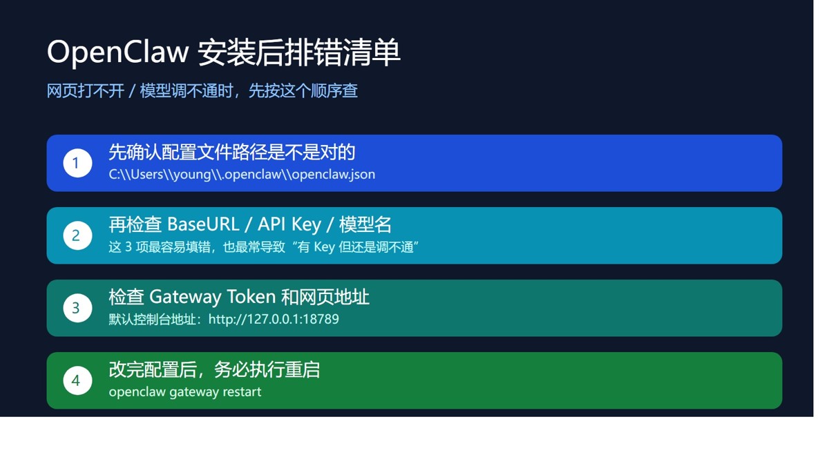 十、网页打不开 / 模型调不通时,按这个顺序排查
