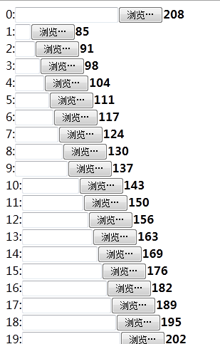 发现了一定的规律,默认为208像素,size="1"时为85像素,每个size之间相差6.5个像素的宽度,所以我们可以动态的设定size的值,如: