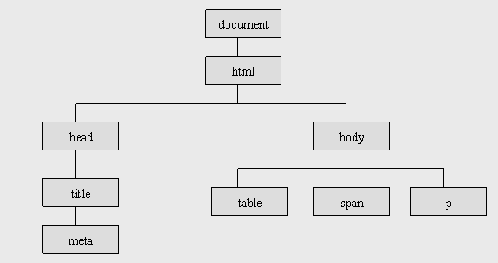 在DOM眼中,HTML跟XML一样是一种树形结构的文档,<html>是根(root)节点,<head>、<title>、<body>是<html>的子(children)节点,互相之间是兄弟(sibling)节点;<body>下面才是子节点<table>、<span>、<p>等等。如下图: