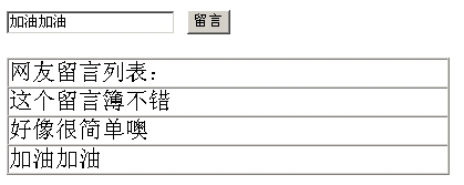 在学会遍历、搜索、修改文档之后,我们现在试着网文档添加新的内容。其实没有什么新意,只是利用我们上述提到的Node的属性和方法而已,还是操作<table>标记的内容。有新意的是,我们要实现一个留言簿。是的,留言簿,你可以往里面留言,只是不能刷新噢。