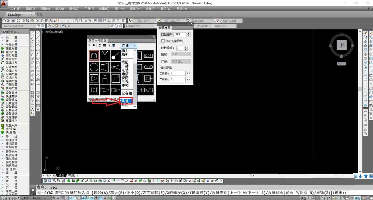 3、进入布置之后,在天正电气右边编辑栏中选择图块,在下拉列表中选择其它