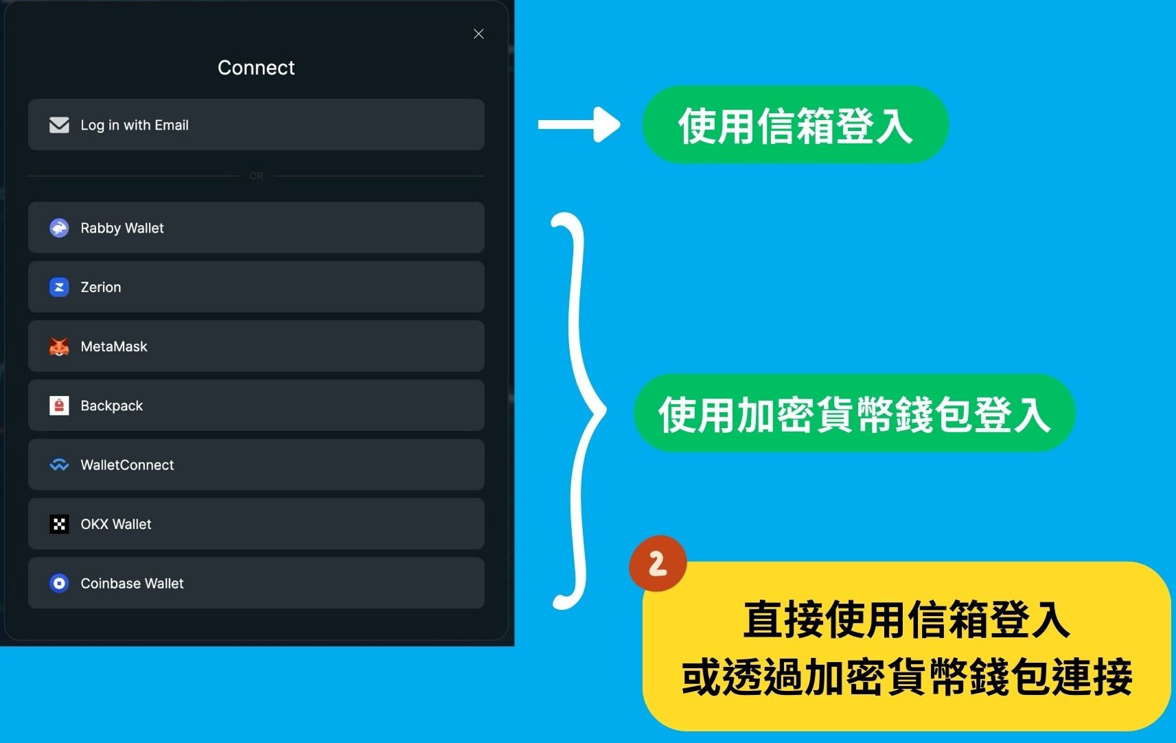 - 接着可以选择通过「信箱登录」或「加密货币钱包登录」。