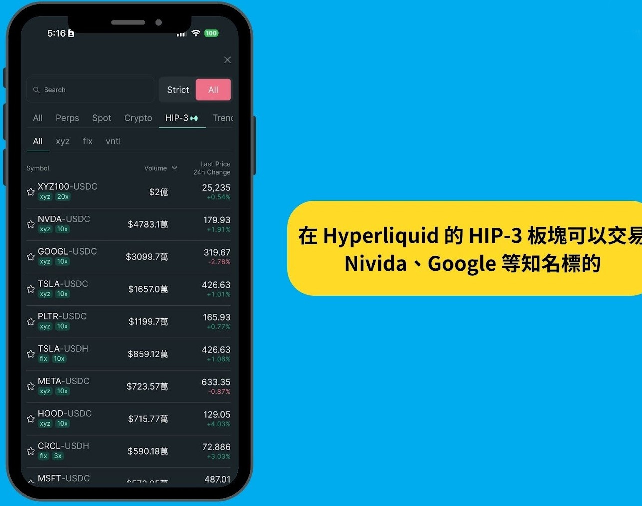 HIP-3(Builder-deployed perpetuals)是Hyperliquid 「允许任何人无许可上线永续合约市场」的机制,当前仍在测试阶段。
