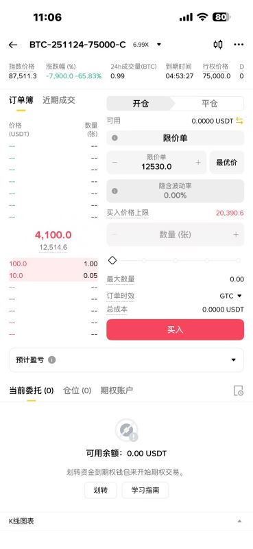 注意:需先有现货账户,转USDT到“期权钱包”。