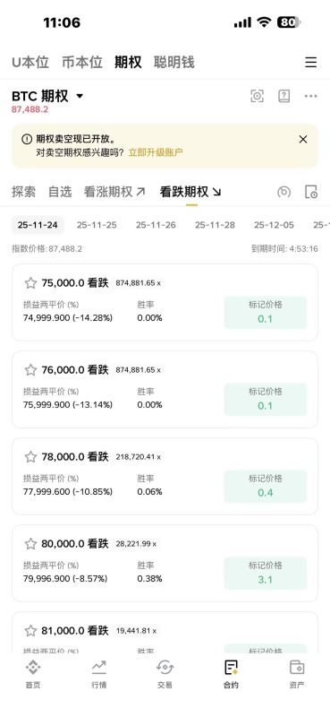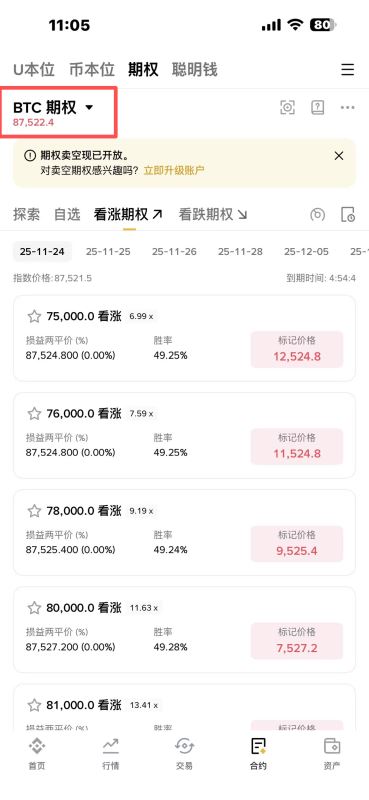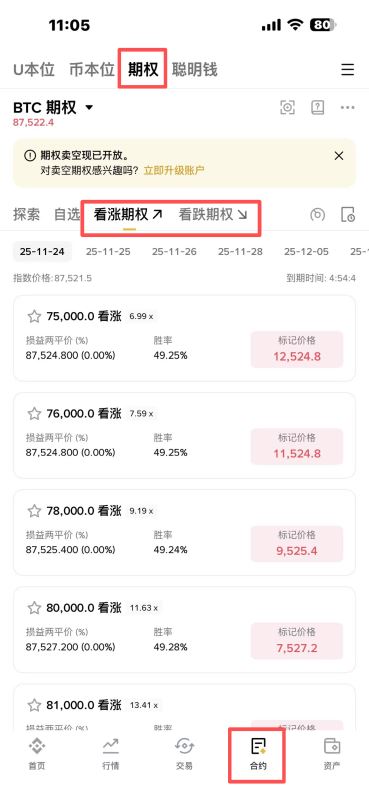 选择币种(如BTCUSDT期权) → 查看Call/Put链(不同行权价&到期日)。