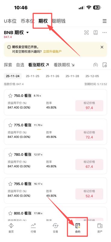 | 到期日(Expiry) | 期权“有效期”,币安主要是美式期权(到期前随时行权),周期从1周到1个月。 | 周五结算,提前卖出也能止盈。 |