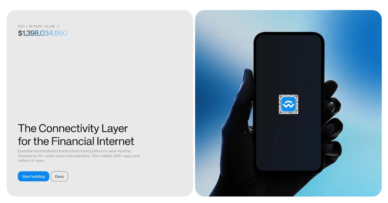 WalletConnect 是由 Pedro Gomes 于 2018 年推出的一个开源协议,它无需浏览器扩充功能即可实现加密的、点对点的加密货币钱包与去中心化应用进程之间的连接。它目前支持超过 5,400 万个独立活跃钱包、超过 3.8 亿次连接以及 80,000 多个 dApp,使其成为 Web3 中最广泛采用的连接层之一。