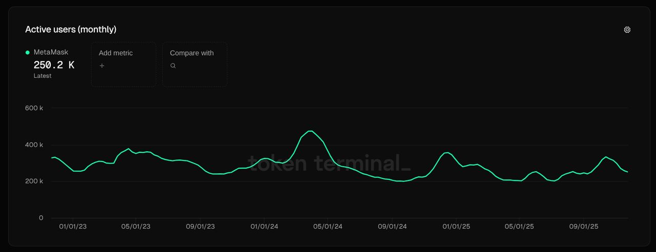 MetaMask 是一个领先的 自托管加密货币钱包,由 Aaron Davis 和 Dan Finlay 于 2016 年推出,截至 2025 年,每月活跃用户超过 3,000 万。它支持以太坊和所有主要 EVM 链上的安全保存、无缝 dApp 访问和交易。凭借内置兑换、硬件钱包支持、自订网络集成、投资组合追踪、多链桥接和 Snaps 扩充框架等功能,MetaMask 仍然是 DeFi、NFT 和链上活动最通用和值得信赖的入口之一。由于围绕潜在的 MetaMask 空投的持续猜测,该钱包也获得了额外的关注,促使许多用户在 MetaMask 生态系统中保持活跃。