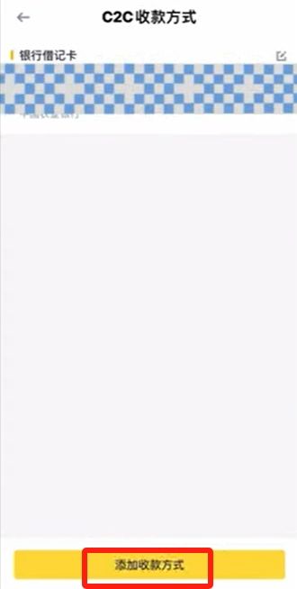 回到主页,我们就能够直接在主页看到C2C,其他的功能也能同样的操作把它放到主页上。点击【C2C】进入到法币交易的页面。C2C就是个人都按个人的收款方式,是大陆币圈比较常用的充值方式。我们要先添加一个收款方式,才能正常的充值和提现。点击右上角的三个点,选择【收款方式】,点击下边的【添加收款方式】。