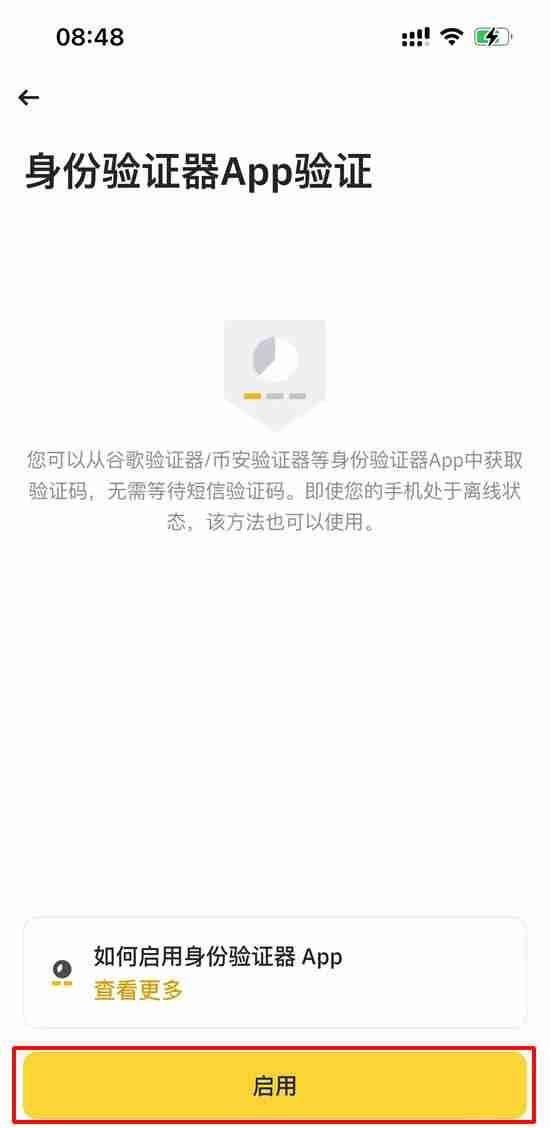 5. 确保您已经在手机上安装了 Binance Authenticator APP后,点击[启用]。